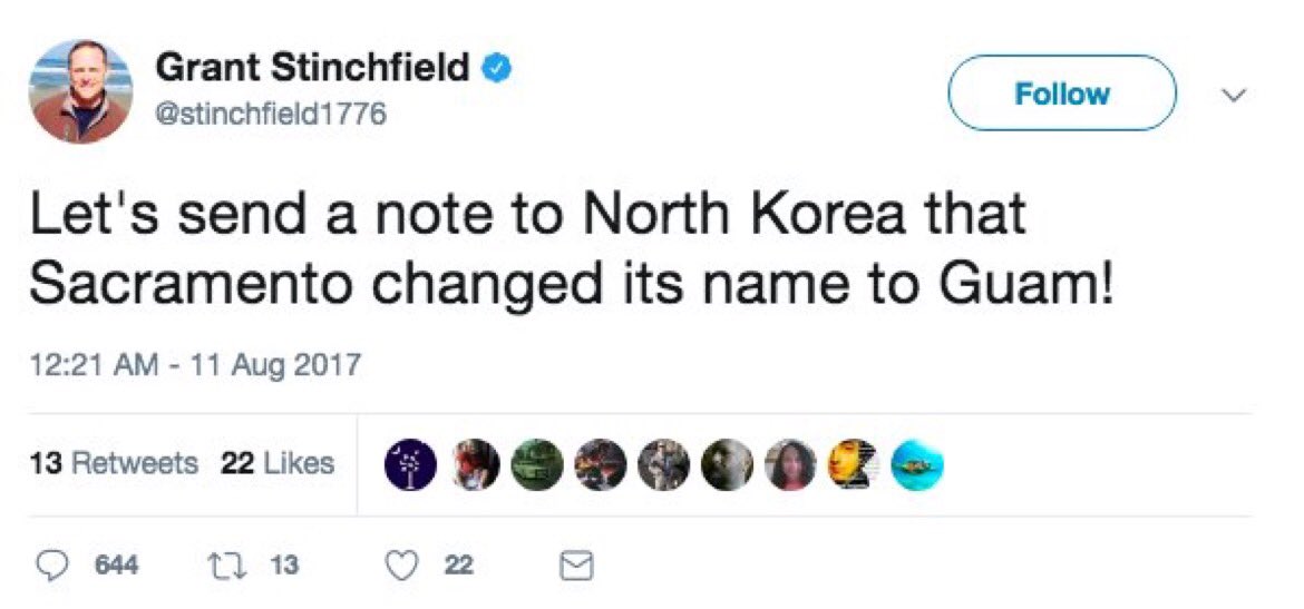 https://twitter.com/SethAbramson/status/896088422338535424 This is in theory good since it's a strong disincentive for either side to strike first However, disincentives don't always work on irrational people and the main guys involved are Trump and Kim --- Congrats to BKSheikah for winning the BYIG Guru Challenge! ... Copied to Clipboard!